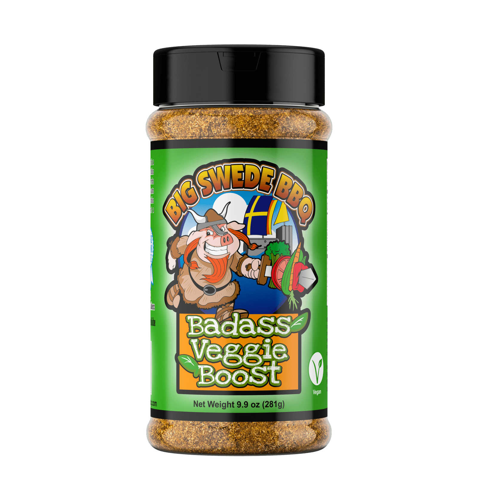 Big Swede BBQ Badass Veggie Boost is a bold and flavorful rub for vegetables with a perfect balance of fresh herbs and savory flavors. It will elevate roasted, grilled, or smoked vegetables and make "Eat your veggies" not a punishment, but a reward.