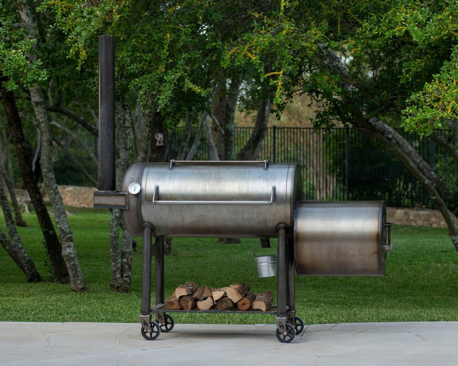 Every pit comes with a Tel-Tru thermometer, grease bucket, water pan, removable steel cooking grate, bolt-on smokestack, and owner's manual.