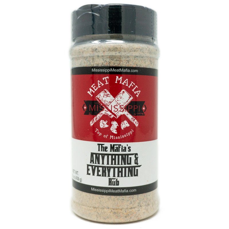 Mississippi Meat Mafia presents The Mafia’s Anything & Everything Rub is a balanced and blended mix of salts, spices and herbs. Great on vegetables, added to soups, or as a first layer on beef, fish, chicken, pork, salads. This is the all purpose rubs that will work with anything and goes great on everything else.