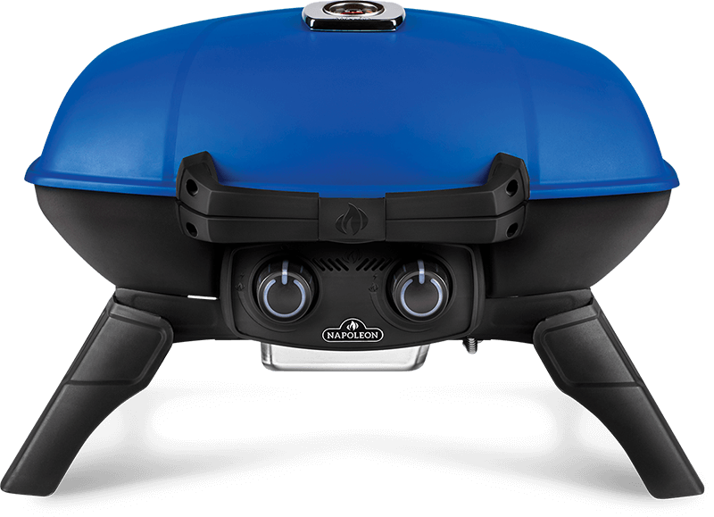 The Napoleon TravelQ™ 285 Portable Propane Gas Grill has set a new standard in portable grilling excellence. Don’t let the small size fool you; this grill boasts 285 square inches of total grilling area. That means you can grill up to 17 large hamburgers at once. Two, individually controlled burners provide precise temperature control. Smoke, and roast using indirect heat or sear perfectly over intense heat. You’ll know it’s a Napoleon with the iconic WAVE™ cooking grids for those distinctive sear marks. The porcelain coated enamel grids will season to a nonstick surface just like a cast iron frying pan. This grill features a cast aluminum body to keep it light and portable and the lid is a stylish blue. The legs fold in providing compact storage and a perfect perch. The removable grease tray slides out for easy cleaning and locks in place when you’re storing and traveling with the grill. Take gourmet grilling on the go with the TravelQ™ 285.