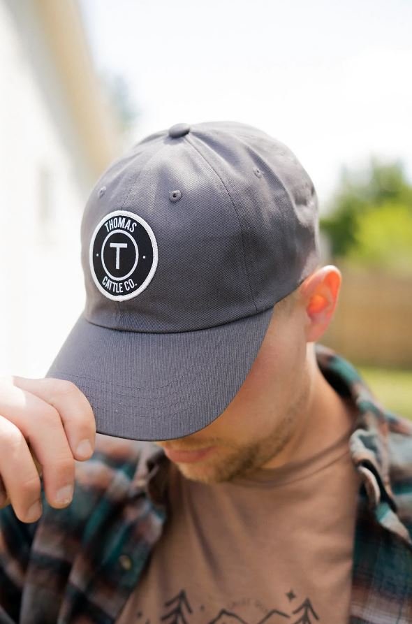 Thomas Cattle Company – Round Stitched Logo Grey Dad Hat